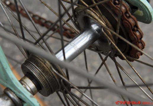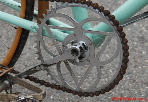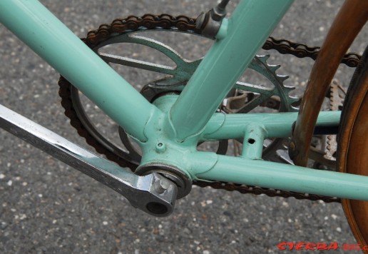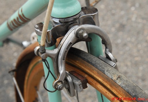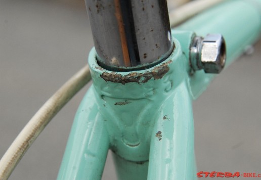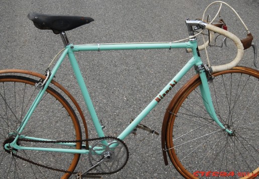 Italské závodní kolo Bianchi v pěkném stavu. Krásné hlavové mufny s integrovaným ložiskem. Originální náboje Bianchi jsou signovány značkou výrobce. Stejně tak kliky, osa a sedlo. Kola je celkově ve velmi dobrém stavu po stší renovaci. Jednotlivé komponenty potřebují seřídit a doplnit o nové galusky a bude připraveno k jízdě.