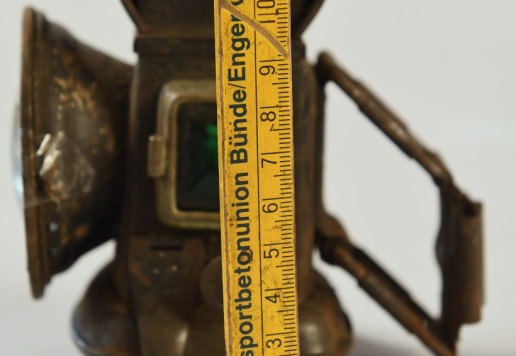 Celková výška 12,5 cm, průměr reflektoru 5,5 cm. Originální stav, který potřebuje renovaci.