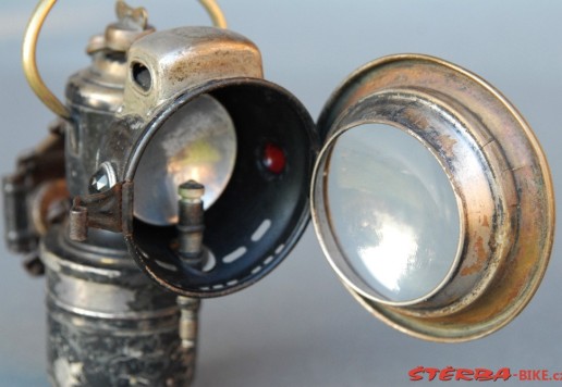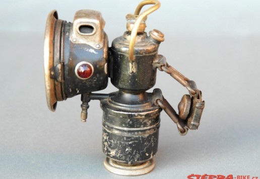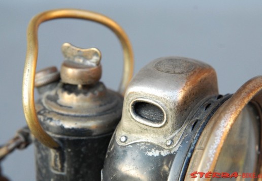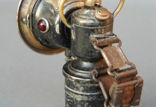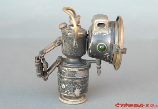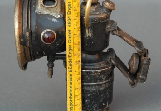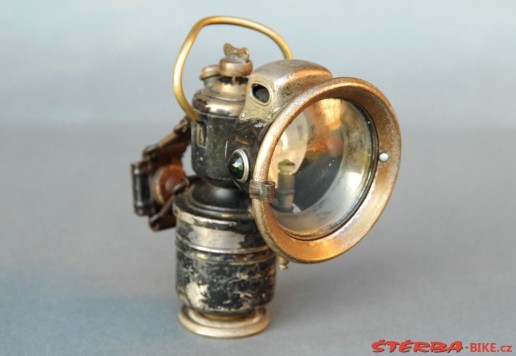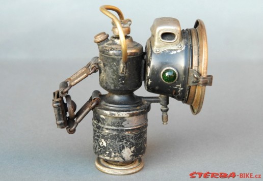 A Powell & Hanmer Ltd. acetylene gas lamp, with carrying bail: a model 'Panther' from the mid-1920s, with front glass and burner in good, original condition.