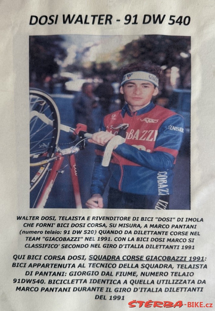 Walter Dosi, narozený v roce 1954, závodník v amatérské kategorii do roku 1975, po ukončení kariéry pracoval jako mechanik a svářeč pro různé cyklistické firmy včetně Giacobazzi, Fiorelli, Fancucine a Magniflex.