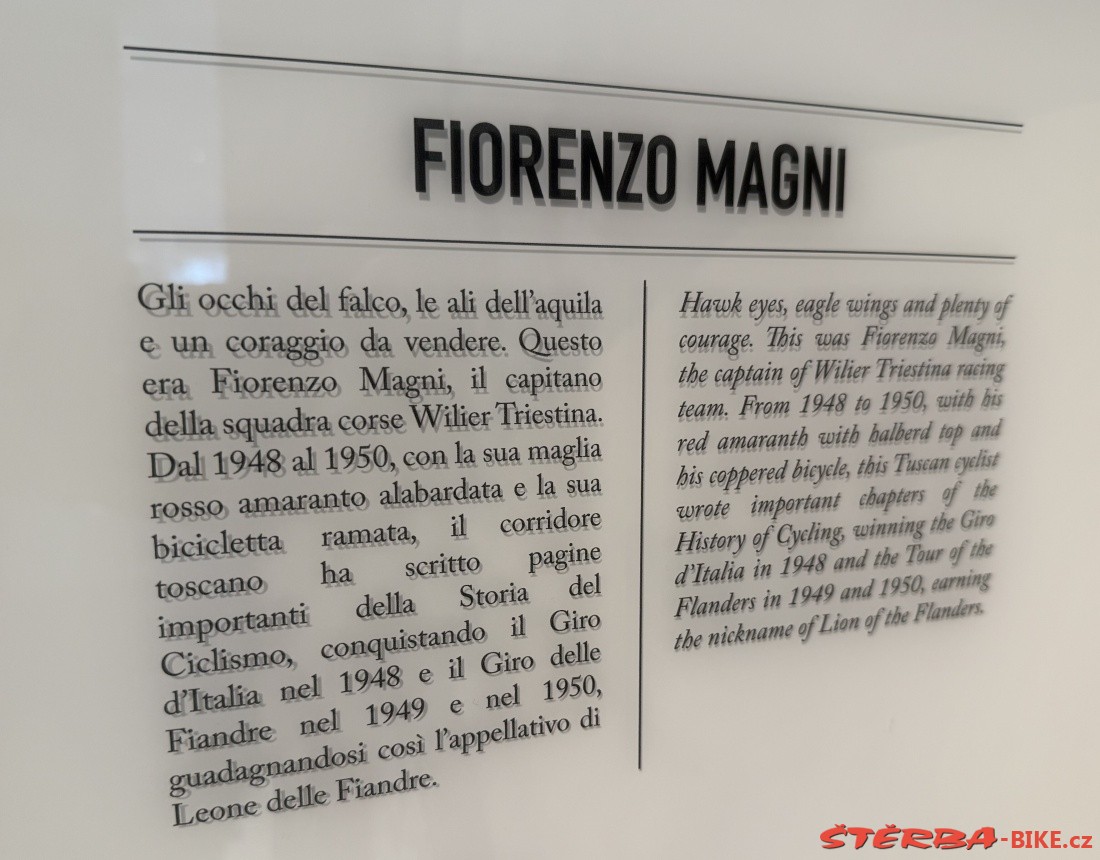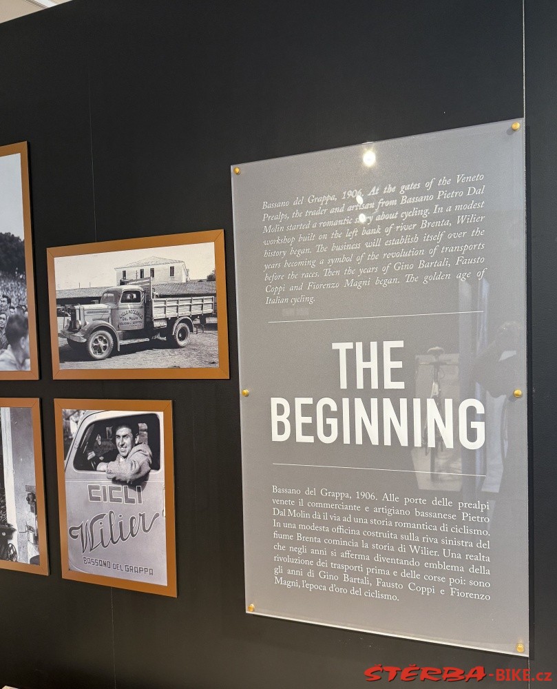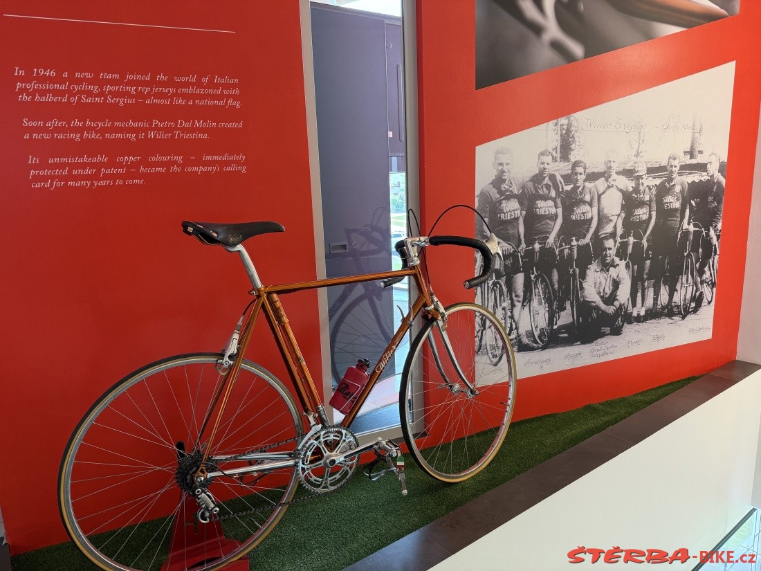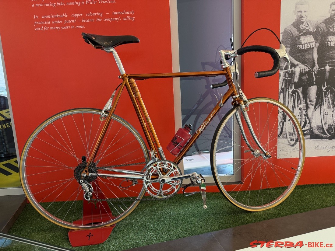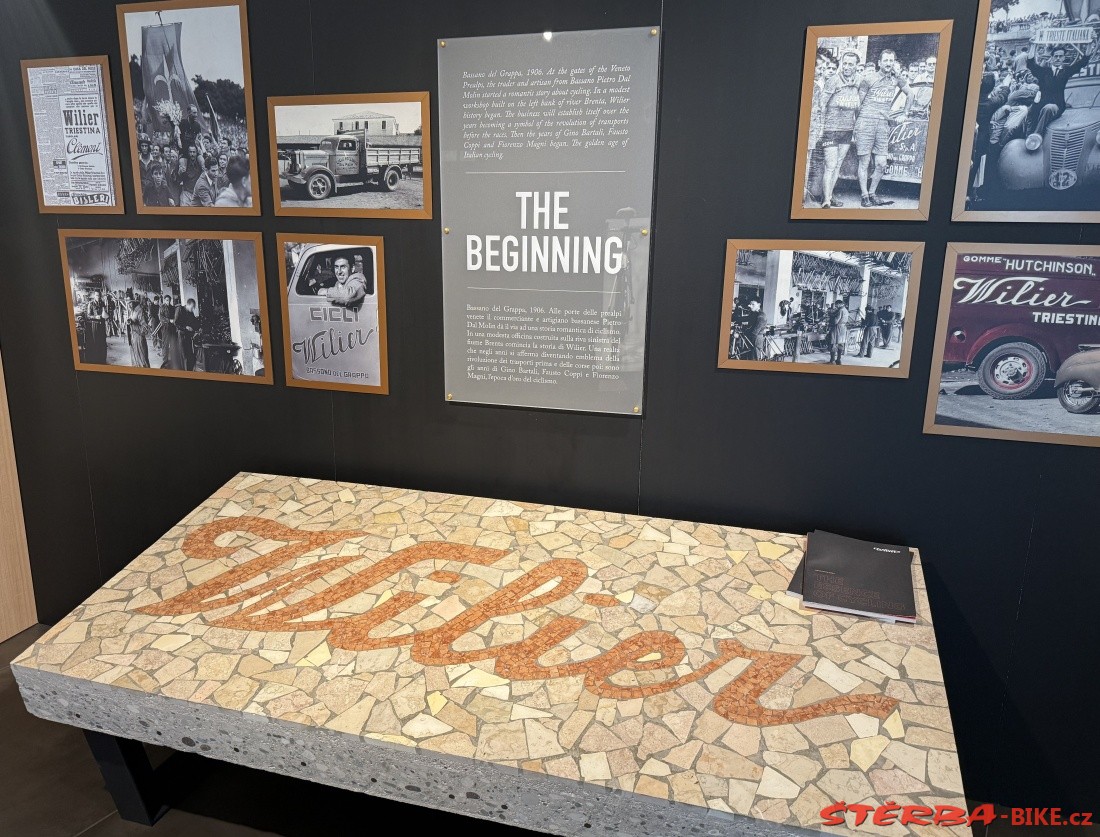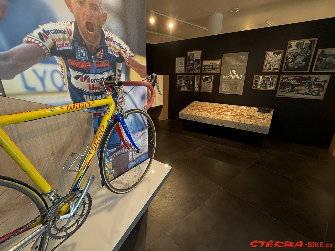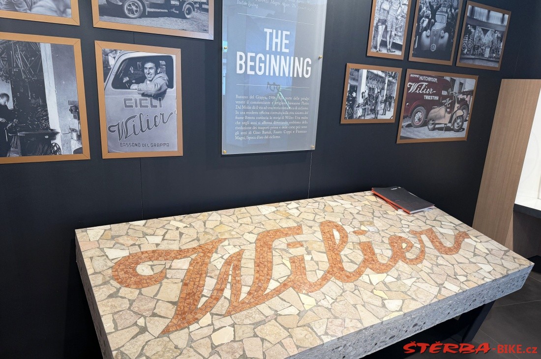 Pietro Dal Molin from Bassano del Grappa took over the English brand Wilier in 1906 and started producing bicycles in Italy. The factory in Rossano Veneto has a long tradition and is constantly expanding. The company has changed hands several times over its long history, but has always tried to build its promotion on cooperation with cyclists and bicycle racers. The showroom in the factory stores and proudly displays a cross-section of products from historic sports bikes to current production.