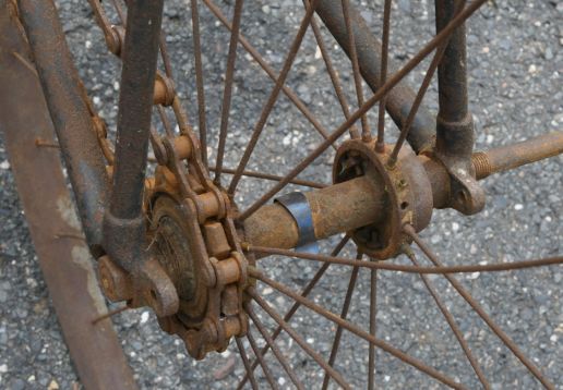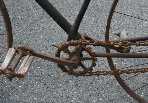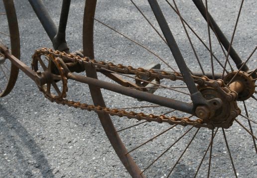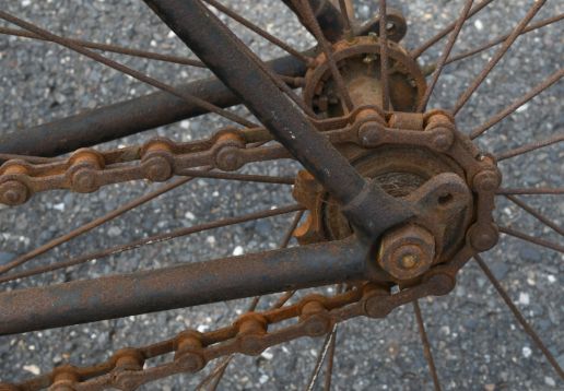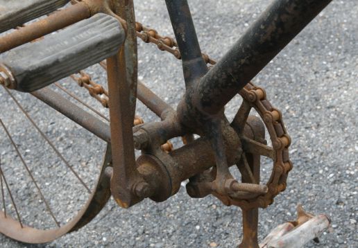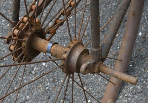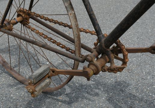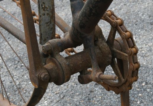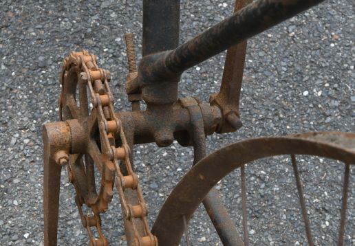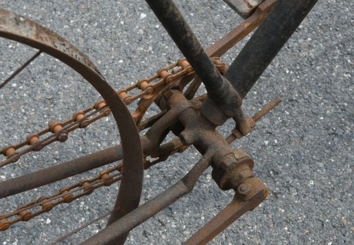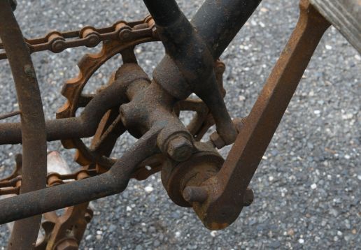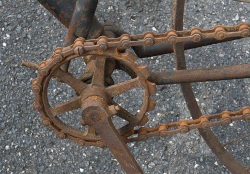 Barn find, hard tire safety with very interesting chain tensioning system,