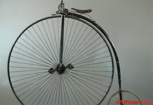 A Thomas Smith of Saltley Mill, 'British Mail' (?) having a 52-inch driving wheel, 3/4-inch crescent rims with good tyring fitted, single hollow-blade forks, circular backbone swaged to a well-castered rear forks. Other features of this very sound machine are 28-inch hooped handlebars retaining their original turned bone grips, and correct brake-lever and spoon. The saddle spring bears a very indistinct etched maker's name and supports an saddle new leather top. The slotted 6-inch 'Badger' detachable cranks posses their original pedals