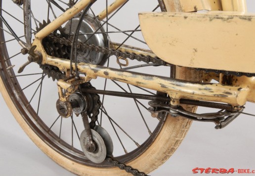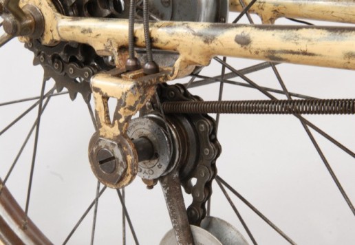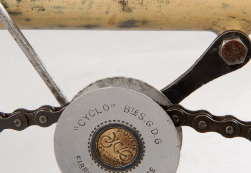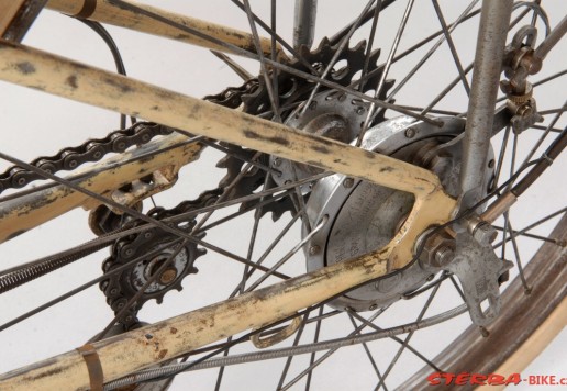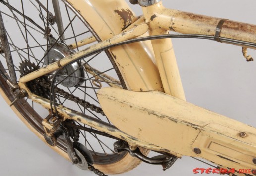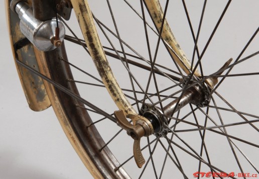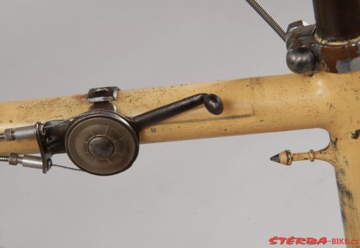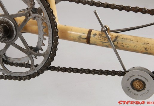 All original parts, original cream paint. Fully restored in the Sterba workshop myny years ago. Spectacular and exceedingly rare French system bike, only a handful known in the world. Museum quality.